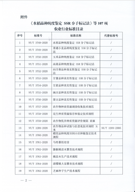附件:《水稻品種純度鑒定SSR分子標(biāo)記法》等107項(xiàng)農(nóng)業(yè)行業(yè)標(biāo)準(zhǔn)目錄