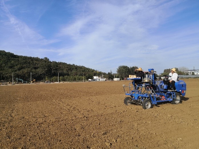導(dǎo)航版自走式小麥小區(qū)條播機在煙臺農(nóng)科院播種出苗效果